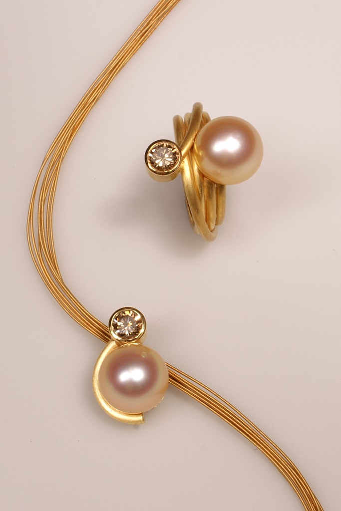 Schmuckset mit Zuchtperle und Brillanten. Idee und Design "stamm&speth"